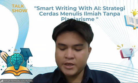 The talk show aimed to enhance participants’ understanding of scientific writing using AI tools while maintaining academic integrity and avoiding plagiarism. Dr. Eko Risdianto provided practical insights into how AI can support writing processes, from idea development to manuscript refinement.