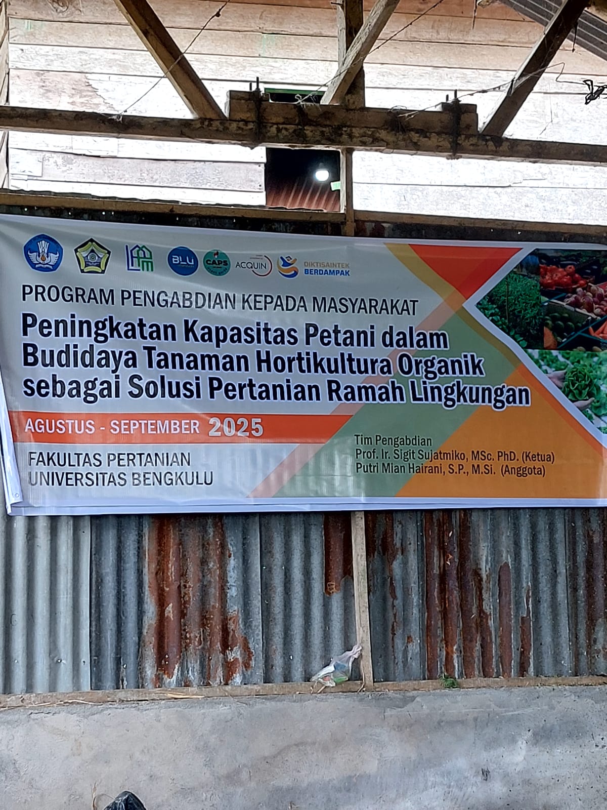 Air Duku Village, Selupu Rejang, Rejang Lebong — The Faculty of Agriculture, University of Bengkulu (UNIB) conducted an organic horticulture training session as part of its Community Service (Pengabdian kepada Masyarakat) program on Saturday, 9 August 2025, in Air Duku Village, Selupu Rejang District, Rejang Lebong Regency.