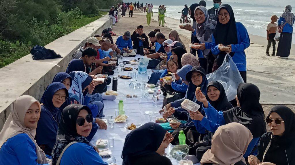 The healthy walk starts from the Pasir Putih area with a route along the Panjang Beach line until it reaches the corner point of the pedestrian path near the beach. Participants enjoy the fresh morning air and calm sea views, making the activity even more fun and healthy. After reaching the end point of the route, the activity continued with breakfast together. Various menus are served, ranging from nasi liwet, nasi kuning, lontong, stir-fried noodles, gudeg, to modern dishes such as onigiri, gimbap mix, risol mayo, and somay. Traditional dishes such as spice lupis also complemented the togetherness of the morning.