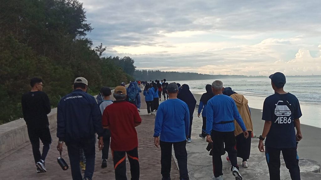 Big Family of Agricultural Technology Department Holds Healthy Walk at Long Beach Bengkulu