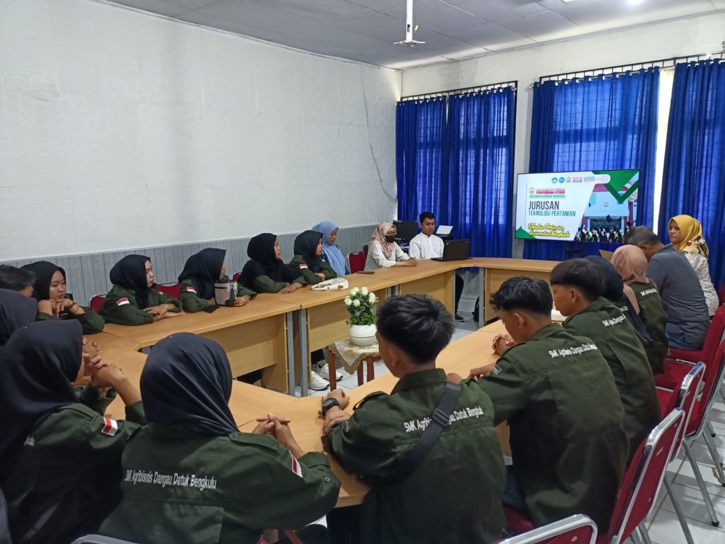 This activity was attended by 14 students from SMK Agribisnis Dangau Datuk Bengkulu and was held on Monday, March 16, 2026, at the Meeting Room of the Department of Agricultural Technology, University of Bengkulu. The participants participated in the activity enthusiastically through material presentation sessions and interactive discussions with resource persons from the study program.