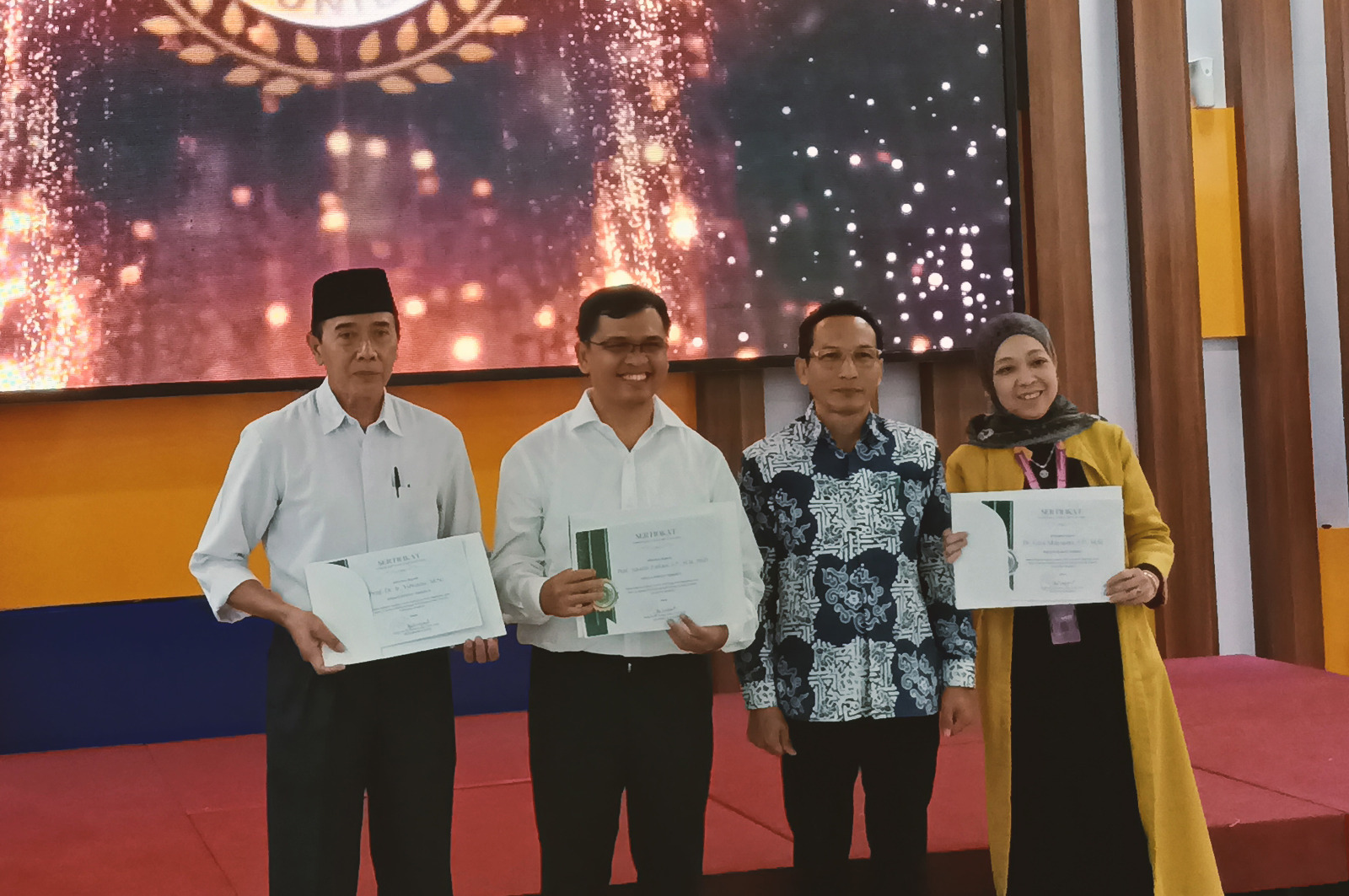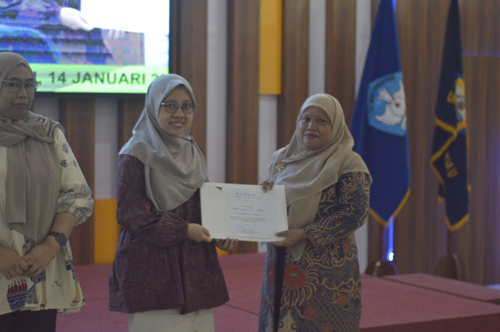 Prof. Dr. Ir. Yuwana, M.Sc., Selly Ratna Sari, S.Pi., M.Si., and Ulfah Anis, S.T.P., M.Sc., lecturers of the Department of Agricultural Technology won the Best Researcher, Best Service, and Best Hima Coach Awards at the 2025 FAPERTA Award