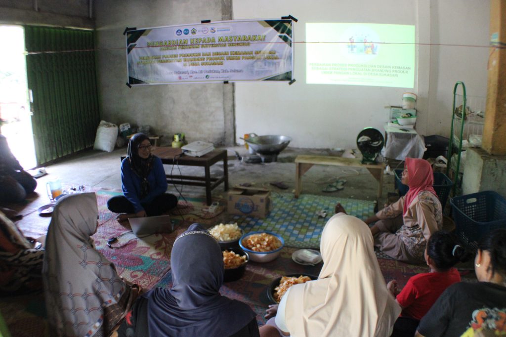 Saturday, October 11, 2025 – The Community Service Team (PKM) from the University of Bengkulu carried out an activity entitled “Improving Production Processes and Packaging Design as a Strategy to Strengthen the Branding of Local Food MSME Products in Sukasari Village”. This activity aims to increase the capacity and competitiveness of local MSME actors through the implementation of Good Manufacturing Practice (GMP) and strengthening brand identity (branding) through product packaging design.