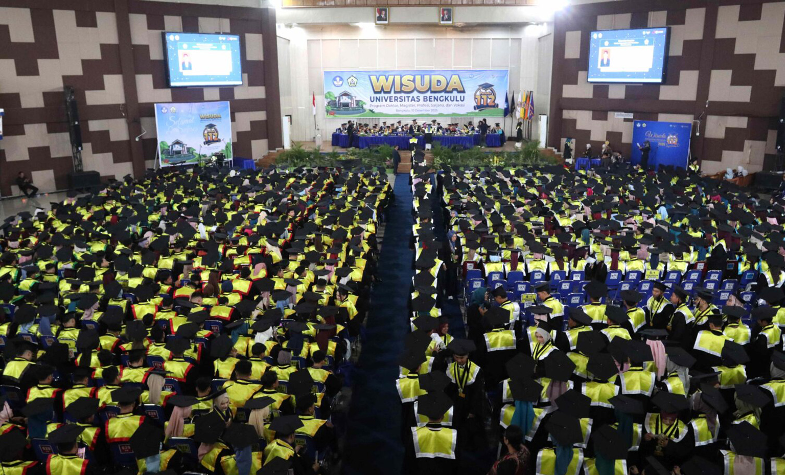 The Graduation of the University of Bengkulu – Period 112 will be held on Wednesday, December 10, 2025, at the Multipurpose Building (GSG) of the University of Bengkulu.