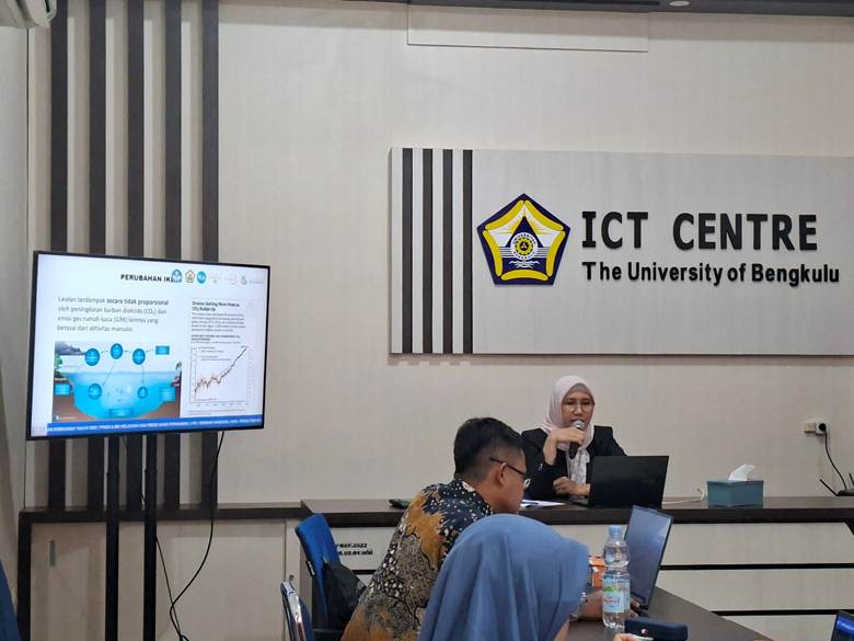 The seminar was moderated by Mr. Person Pesona Renta, S.Kel., M.Si., Ph.D., a faculty member of the Marine Science Study Program at the University of Bengkulu. Three speakers were invited to present their research and insights, including one researcher from the National Research and Innovation Agency (BRIN) and two lecturers from the Marine Science Study Program.