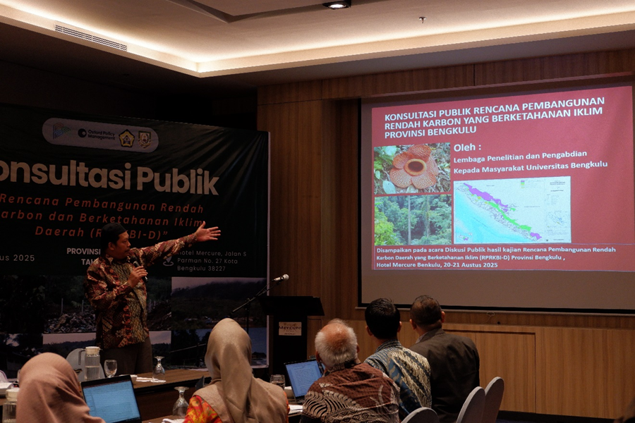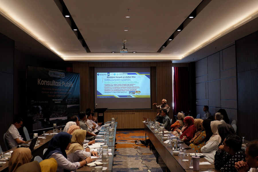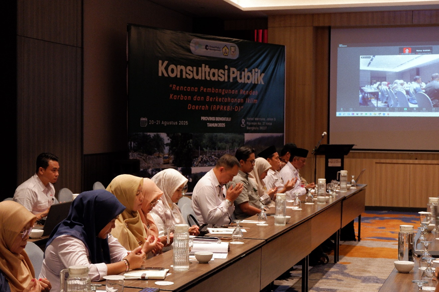 The Public Consultation on the Regional Low-Carbon and Climate-Resilient Development Plan (PRKBI-D) was held on 20–21 August 2025 at Hotel Mercure, Bengkulu City. This strategic document will serve as a key reference for the formulation of the Regional Long-Term Development Plan (RPJPD) 2025–2045 and the Regional Medium-Term Development Plan (RPJMD) 2025–2029 of Bengkulu Province.